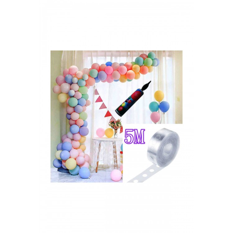 100 Adet Makaron Balon + 5 Mt. Balon Zinciri + Balon Pompası, Karışık Soft Renk Pastel Balon - Parti Dolabı