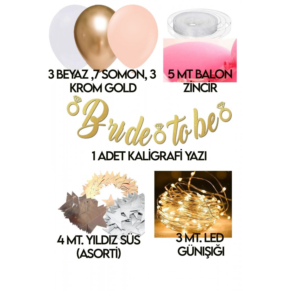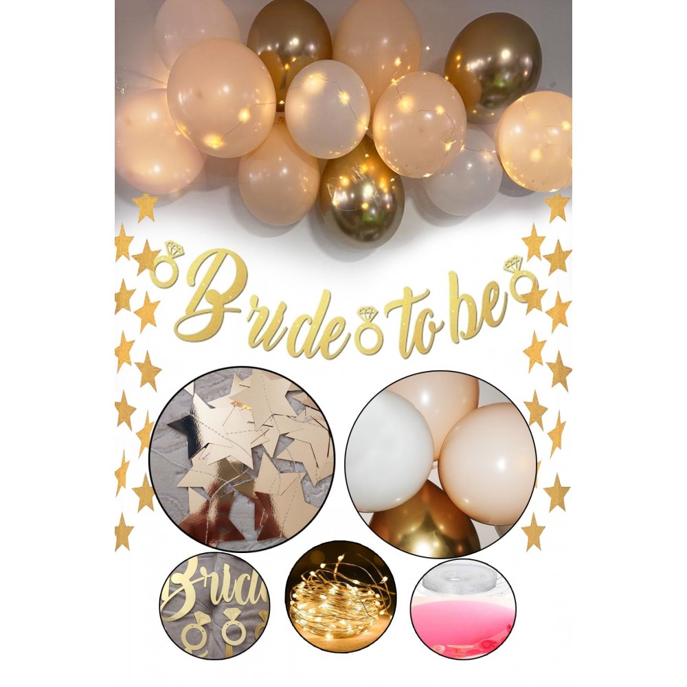 Bride To Be Led Işıklı Zincir Balon Süsleme Seti Mekan Oda Gelin Bekarlığa Veda Partisi Gold Set