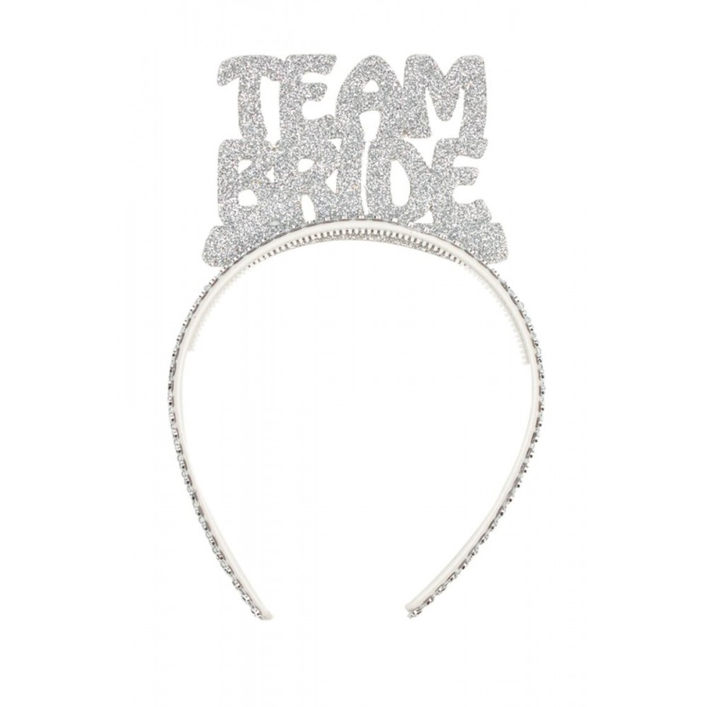 Gümüş Gri "team Bride" Yazılı Taç Simli Evadan Taşlı Parti Bride To Be Bekarlığa Veda Nedime Tacı