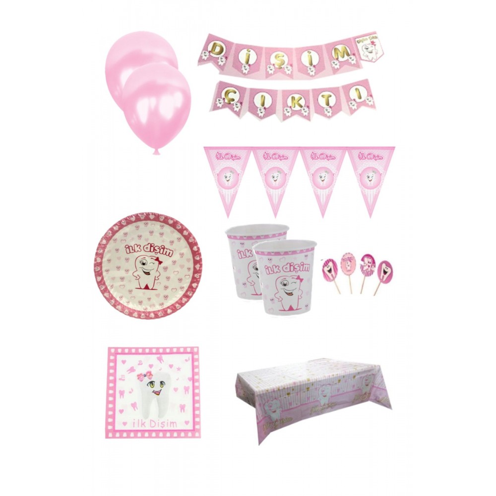 Pembe İlk Diş Buğdayı Kız Parti Seti Süsleme Paketi 8 Kişilik