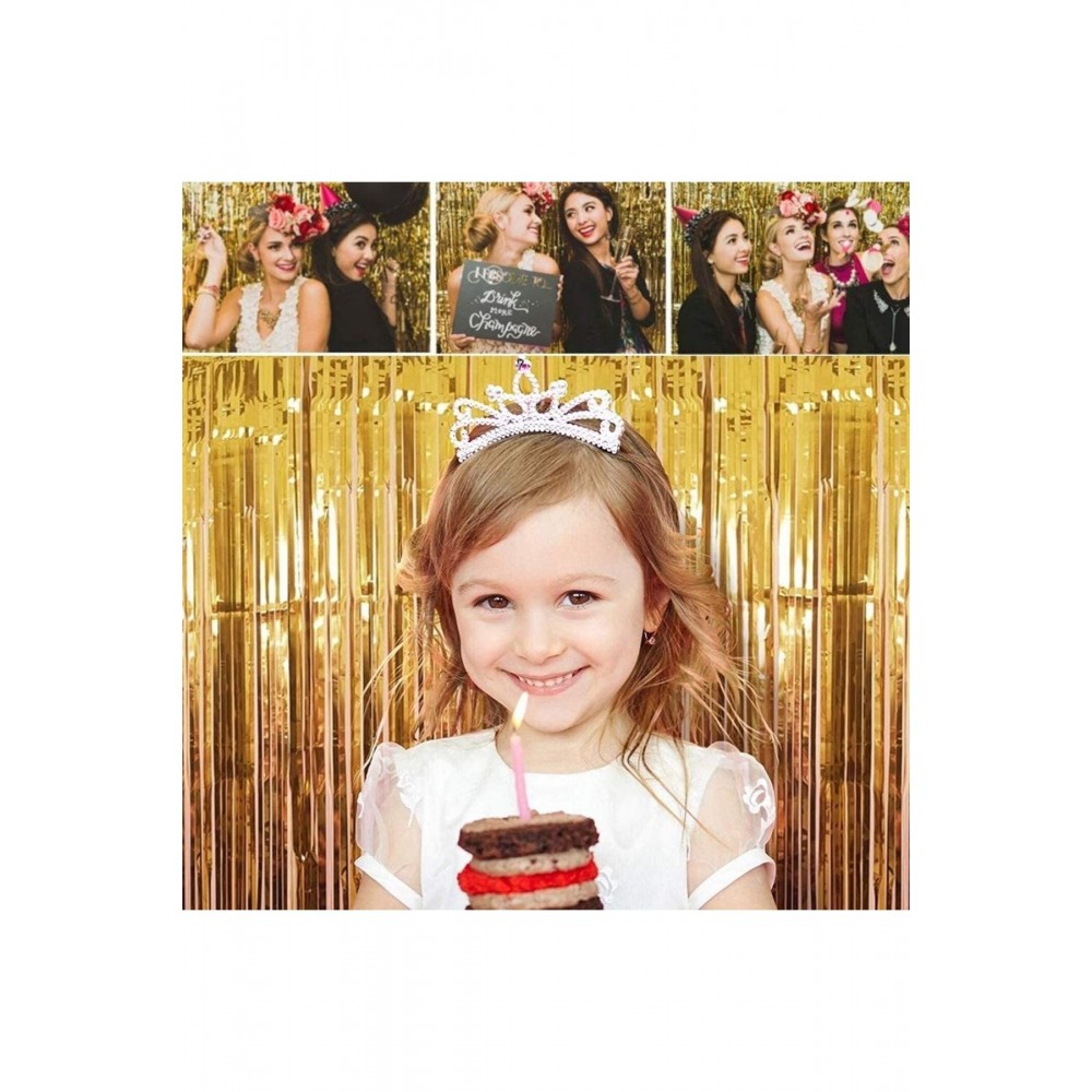2li Düz Gold Altın Sarısı Kapı Duvar Parti Fon Arka Perde Yapışkanlı Doğum Günü Fotoğraf Perdesi