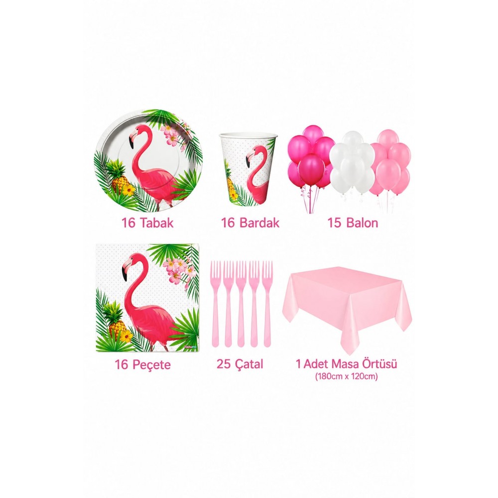 16 Kişi Flamingo Konsepti Parti Malzemeleri Doğum Günü Süs Seti Yaz Temalı