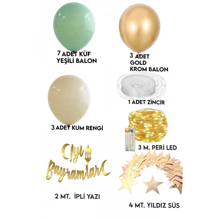 Iyi Bayramlar Gold Altın Kaligrafi Yazı Işıklı Balon Set Ramazan Bayramı Oda Mekan Süsleme Banner