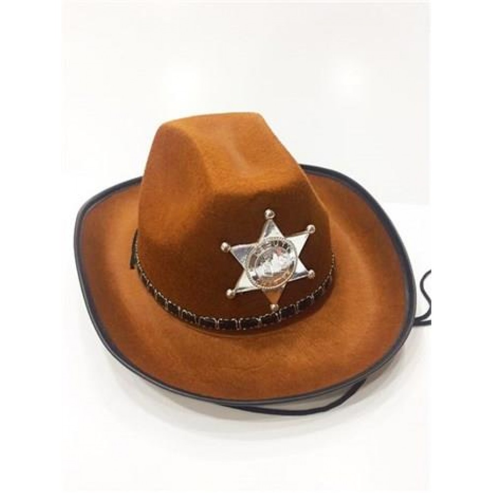 1 Ad Kahverengi Çocuk Kovboy Şerif Şapkası Kostüm Partisi Sheriff 23 Nisan Bayramı